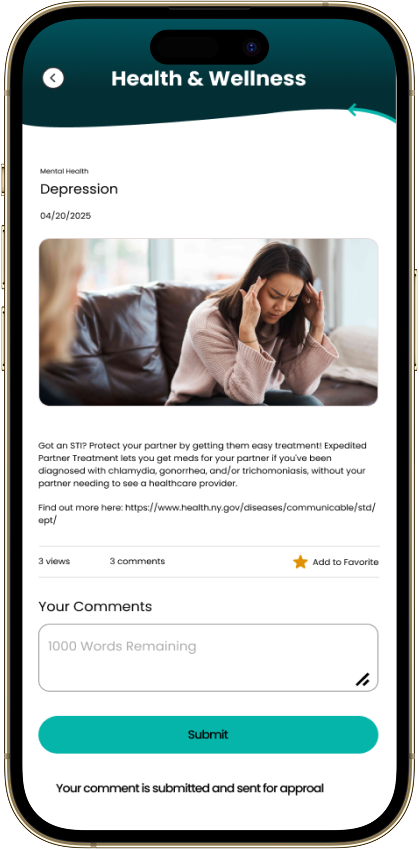 | Resource Hub | A personalized library with curated content from CDC, HealthySexuals, and trusted sources. | Builds knowledge, trust, and promotes health literacy. |