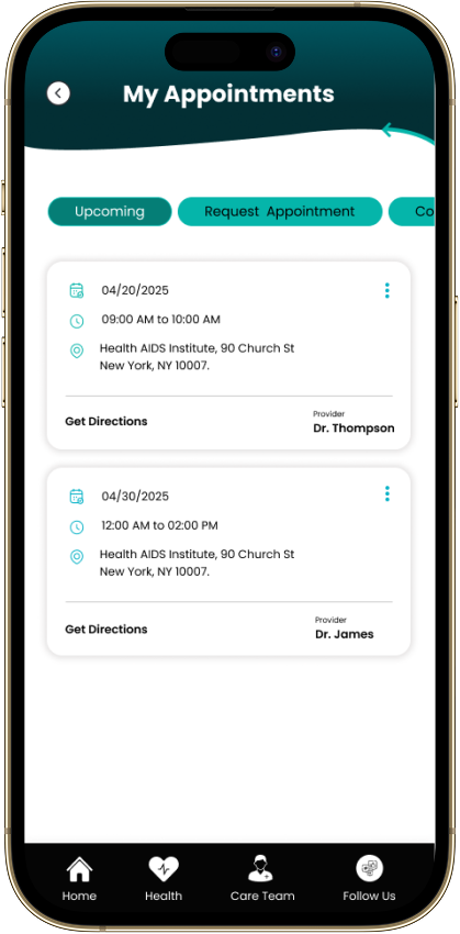 Overview: My role was to design a seamless, user-friendly, and accessible mobile experience. I focused on creating intuitive navigation, clean UI, and accessibility-compliant design to ensure users of all ages and abilities could manage their healthcare with ease.