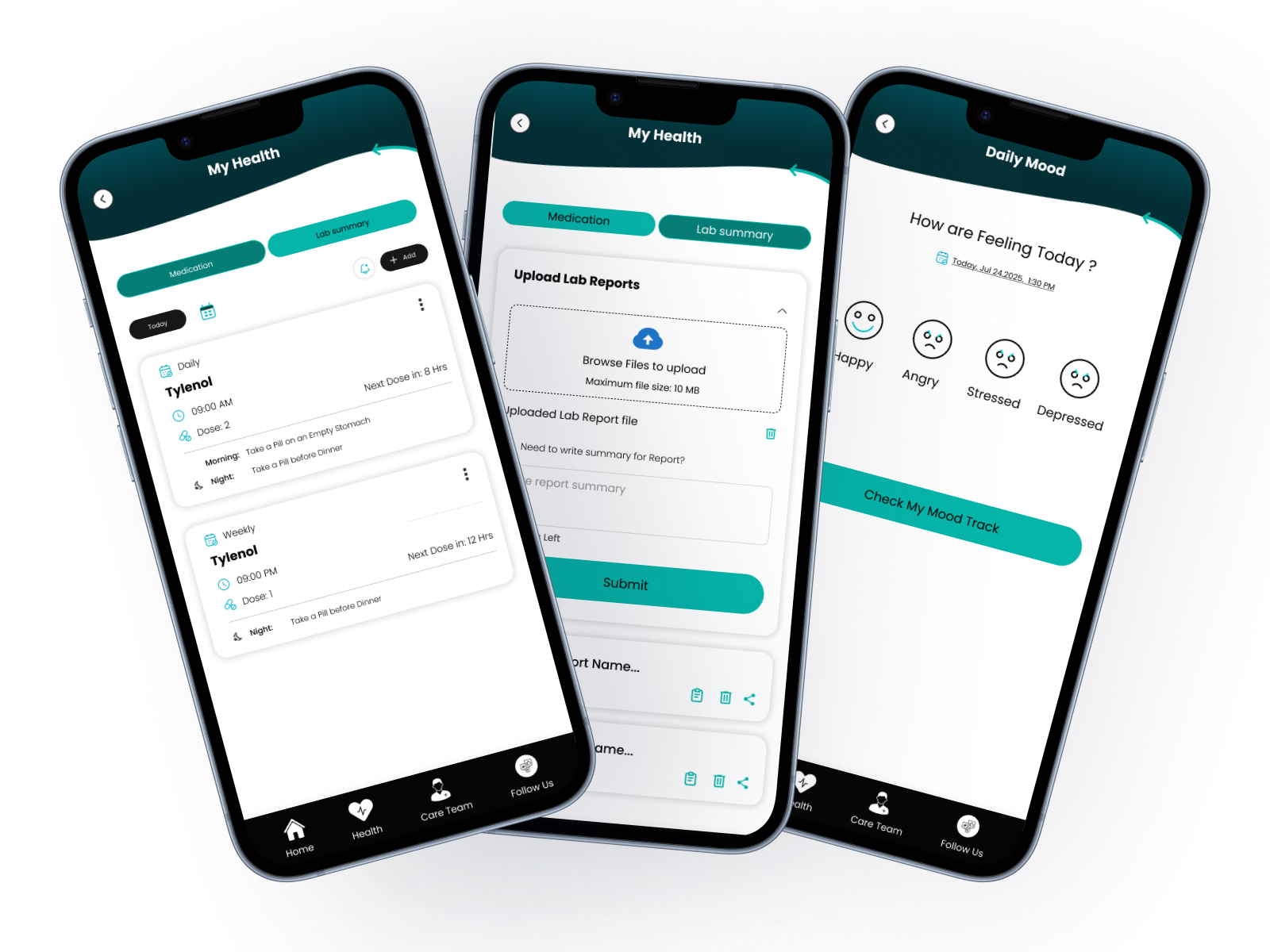 | Mood & Medication Tracker | Built-in tool to track emotional wellbeing and medication intake, with gamification and AI insights. | Improves adherence and empowers users to monitor their health. |